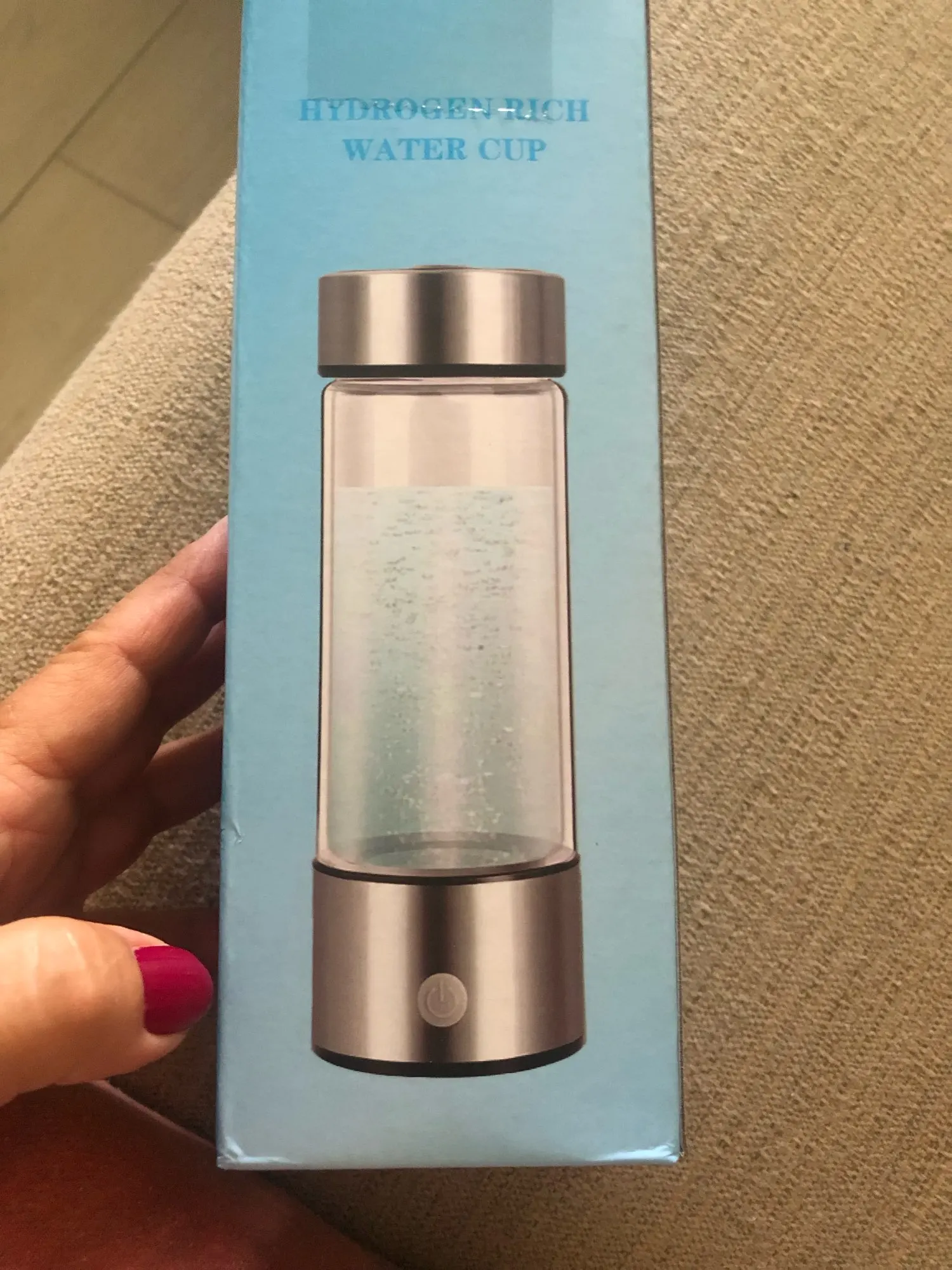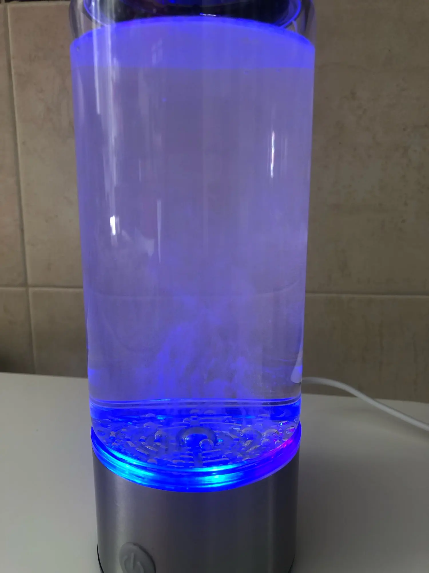 ⚡ Drücke den Power-Knopf: Der Generator startet und reichert das Wasser mit Wasserstoff an.