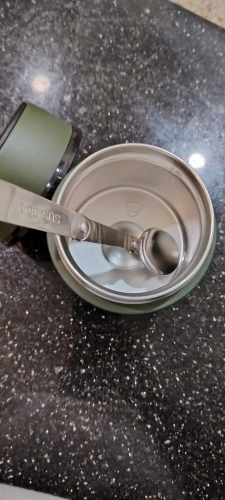 Inklusive faltbarem Löffel, der im Deckel integriert ist. Der weite Mund ermöglicht es, auch größere Lebensmittelstücke problemlos einzufüllen, zu essen und zu reinigen.
